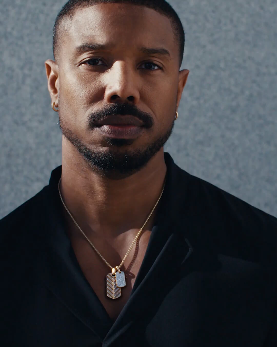 Michael B. Jordan wearing David Yurman Chevron jewelry.